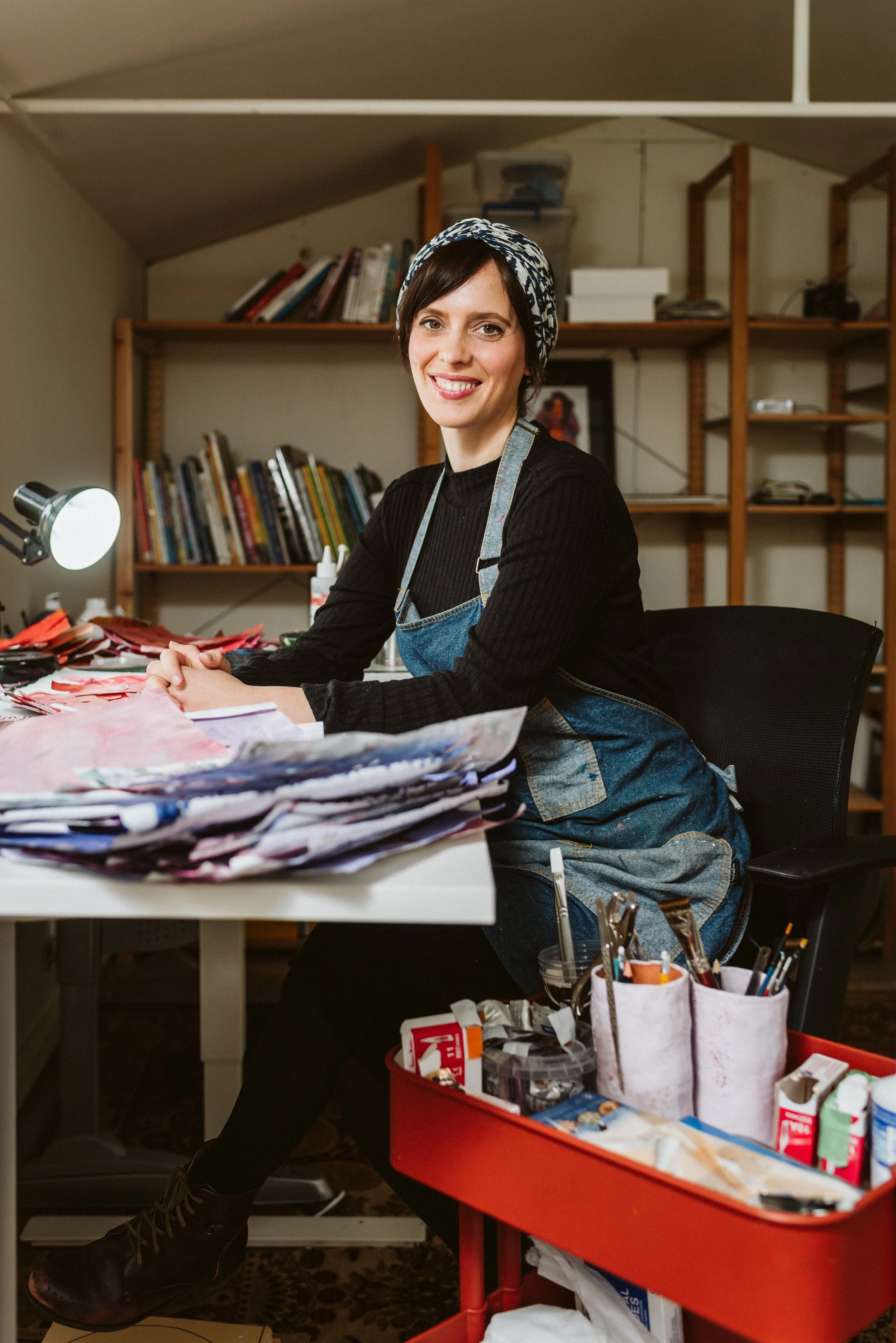 Alice is an artist and illustrator known for her vibrant and expressive work, which spans a variety of mediums, including paper collage, papercut, painting, and drawing. Her style draws inspiration from mid-century illustration, folk art, and early twentieth-century art movements. Her work is distinguished by it’s bold use of color, decorative motifs, and a focus on character and expression.