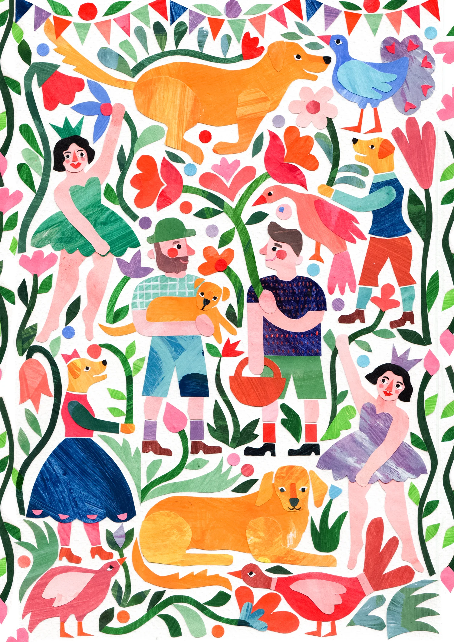A collage commission to celebrate Will's 30th birthday and his affection for his golden retriever Cooper, among other things. This piece pays homage to the work of Ilonka Karasz, with a modern adaptation.