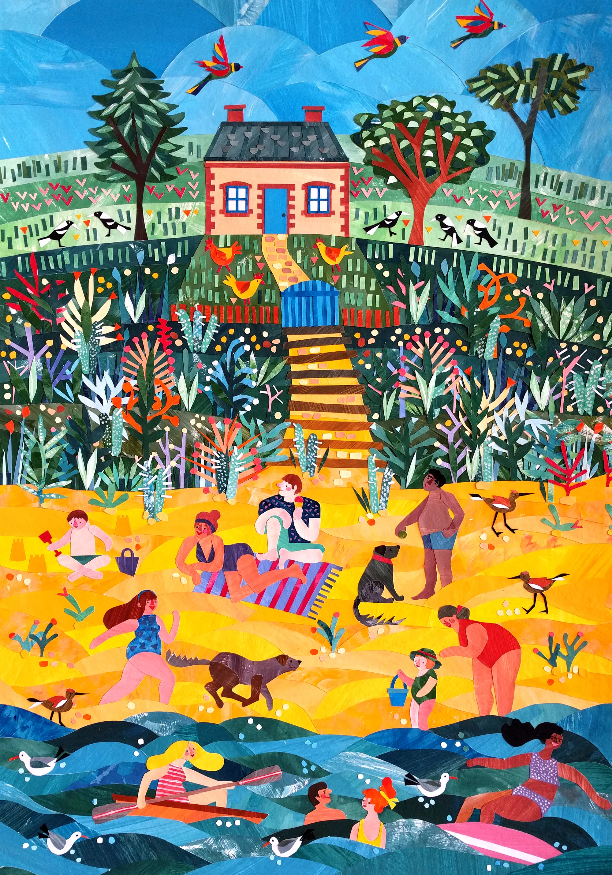 This work was a commission for a client who had recently moved to the Fleurieu Peninsula in South Australia. I wanted to celebrate the beauty and vibrance of the area and make something distinctly Australian that underscored the importance of enjoying, respecting and most of all protecting our costal environment. The collage is A2 in size and composed of disparate scenes depicting both the human and native bird life that populates the area.